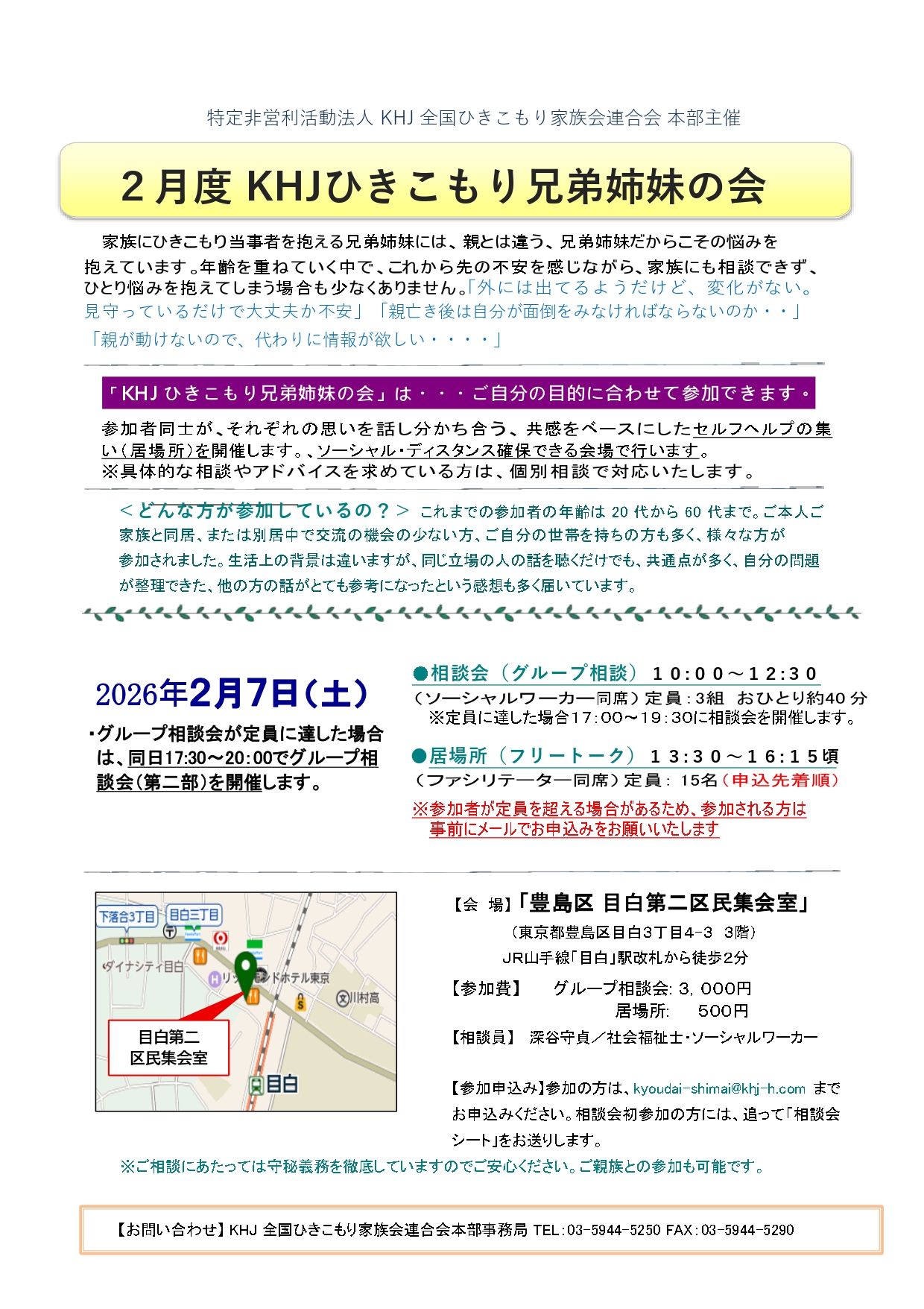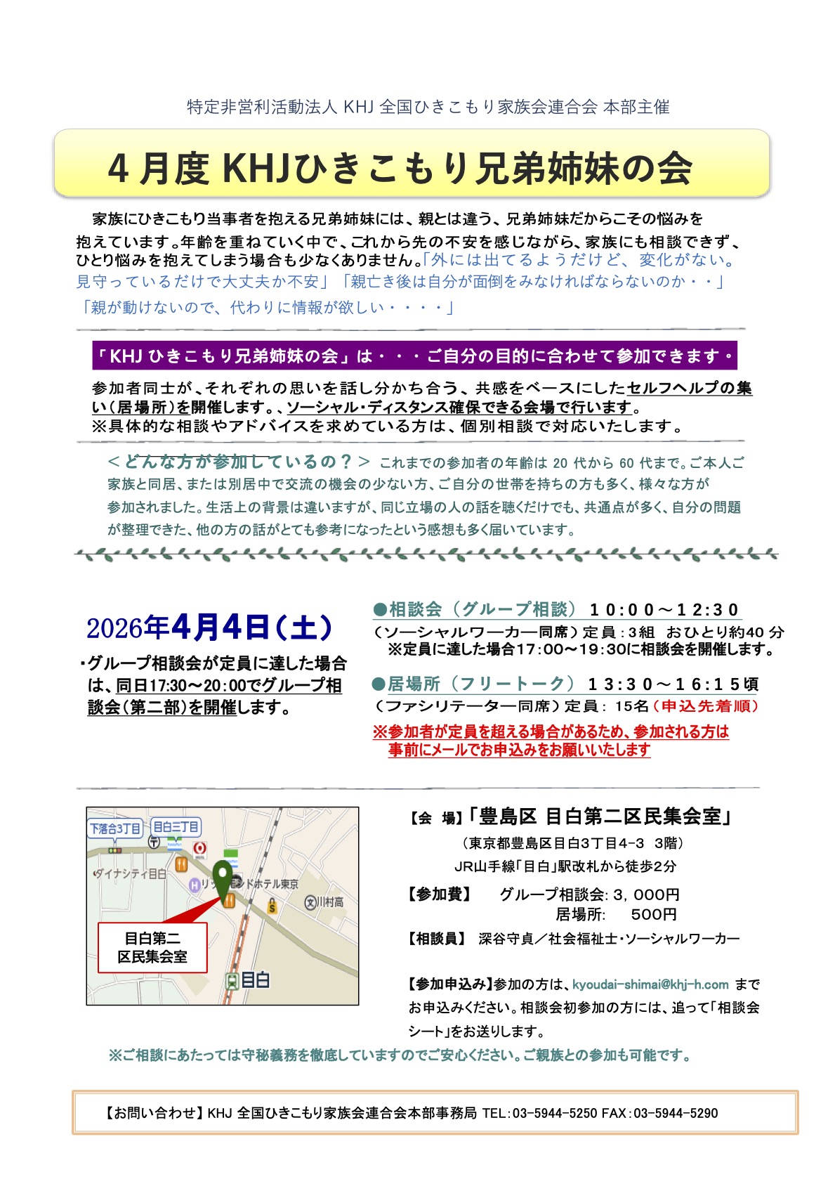 KHJひきこもり兄弟姉妹の会 活動主旨